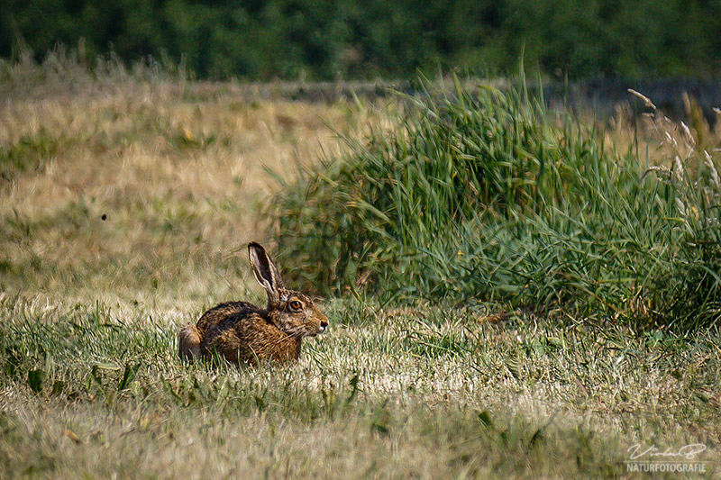 Ab 20. Mai hatten wir fast durchweg Temperaturen um 30 Grad und höher. So wie auch Gianni nicht mehr mit vollem Tempo über die Wiesen raste, weil er Baden vorzog, erging es wohl auch dem Hasen, dem ich mich mit Gianni an der Seite bis auf 30 Meter nähern konnte. Dann erst erwachte er aus der Starre, machte einen Rundblick und hoppelte davon.